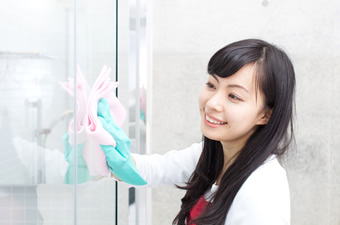 清掃作業では、建物の特性に合わせた管理内容を構築し、日常清掃、定期清掃、特別清掃を区別することで、常に施設をキレイな状態に保ち、清潔で快適な職場環境の維持に努めています。